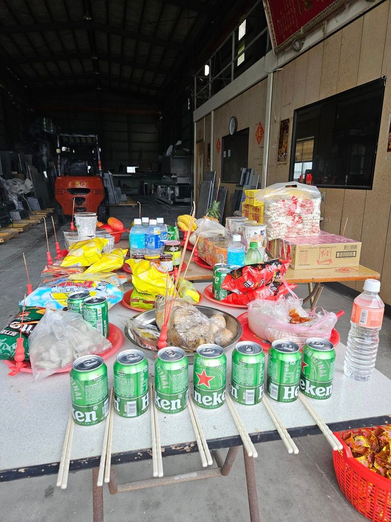 每月十六回自家工廠是我的固定行程,除了幫忙長輩拜門口,也順帶檢視著工廠內有無其他異狀,巡視場內的結界,並給予定時修補及加強。母娘則會與神明例行性的開會,神明一一回報最近狀況、目前安排進度及後續的規劃等…..。擺好供品上香,誠心呼請該轄區土地公及兵將,帶領好兄弟共同賞用佳餚,待吃飽飯後燒化紙錢的感謝。